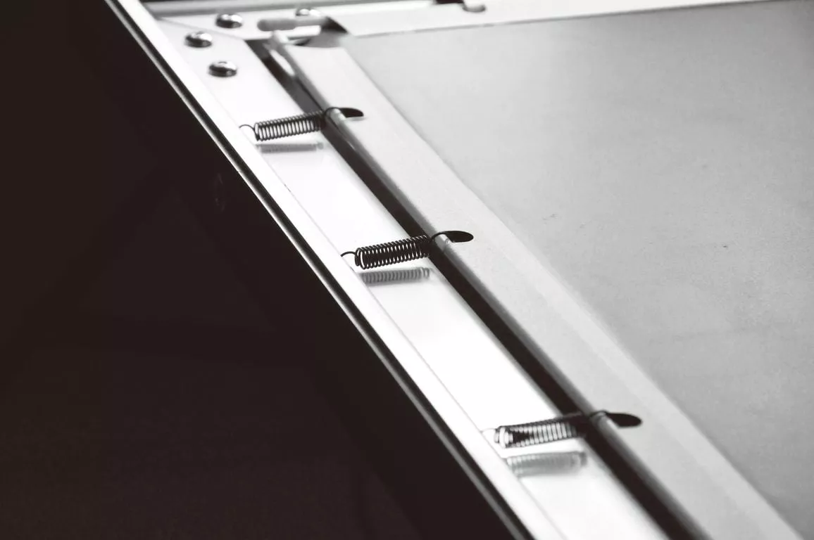 Идеально плоское полотно с основой-материал PVC. Полотно равномерно натянуто по периметру рамки, что препятствует возникновению неровностей и волн во время эксплуатации;