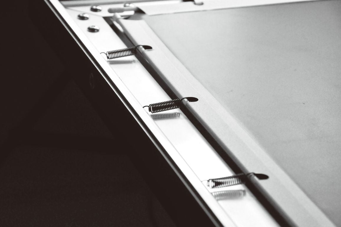 Идеально плоское полотно с основой—материал PVC. Полотно равномерно натянуто по периметру рамки, что препятствует возникновению неровностей и волн во время эксплуатации;