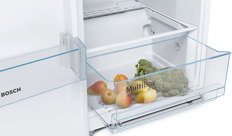MultiBox – Достаточно места для свежих продуктов. Вместительный MultiBox подходит для хранения фруктов и овощей. В нем также можно хранить особенно крупные овощи, например, большие салаты. В шкафу имеется 6 полок из безопасного стекла, пять из которых — полки EasyAccess , которые можно выдвинуть наполовину. Благодаря этому продукты очень легко класть в холодильник и доставать. Полки также гарантируют превосходный обзор: продукты, находящиеся на задней стороне полки, не будут упущены из виду.
