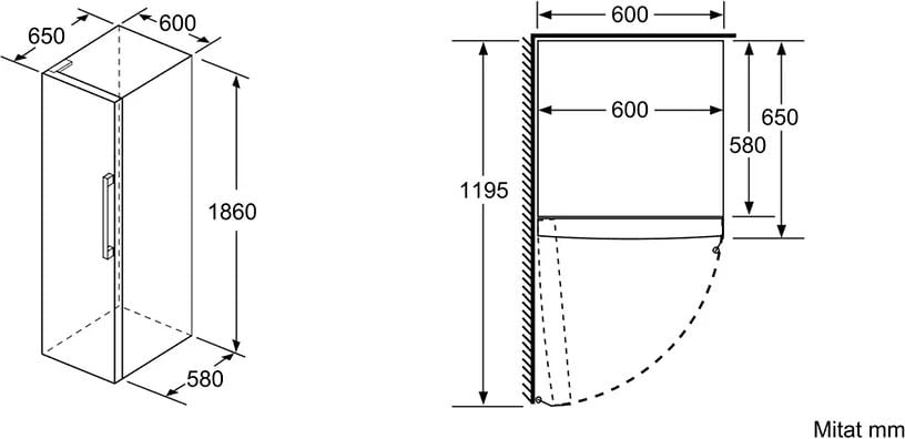 Размеры В х Ш х Г (мм): 1860 х 600 х 650