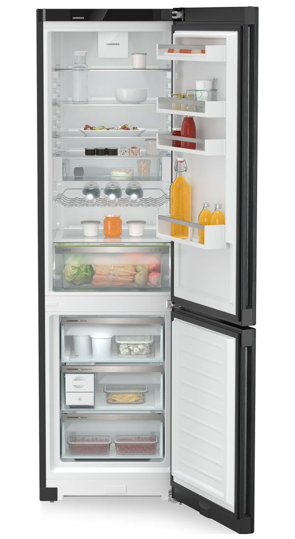 За свежесть продуктов отвечают фирменные технологии Liebherr. EasyFresh поддерживает повышенную влажность для неупакованных овощей и фруктов, продлевая их срок годности. В холодильной камере равномерное распределение холода обеспечивает PowerCooling с тихим вентилятором, а SuperCool быстро охлаждает свежие покупки и затем отключается автоматически.