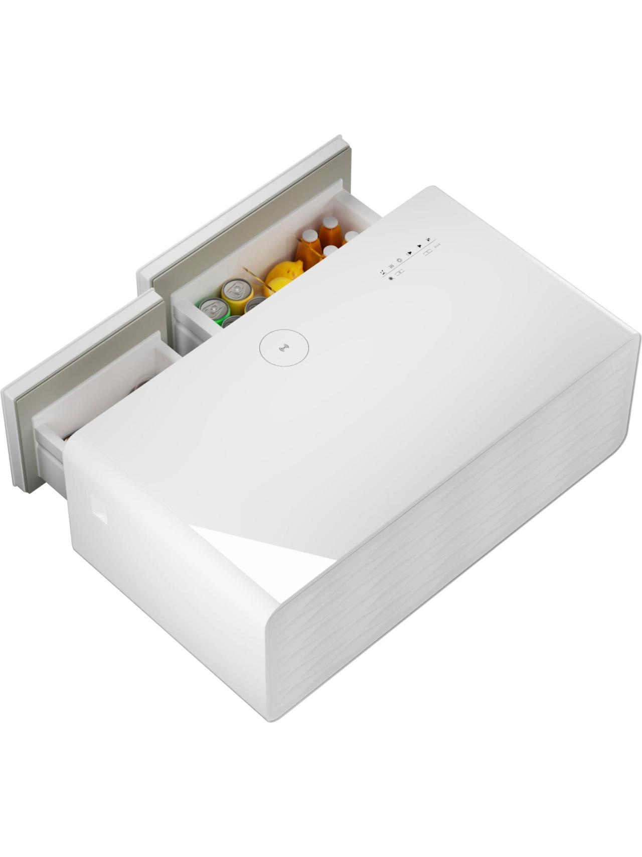 Модель оснащена холодильным отделением объемом 68 литров с температурным диапазоном +3…+12°C — для напитков, фруктов и закусок. В морозильном отделении объемом 28 литров диапазон температуры составляет –24…–12°C — для мороженого, льда и десертов.