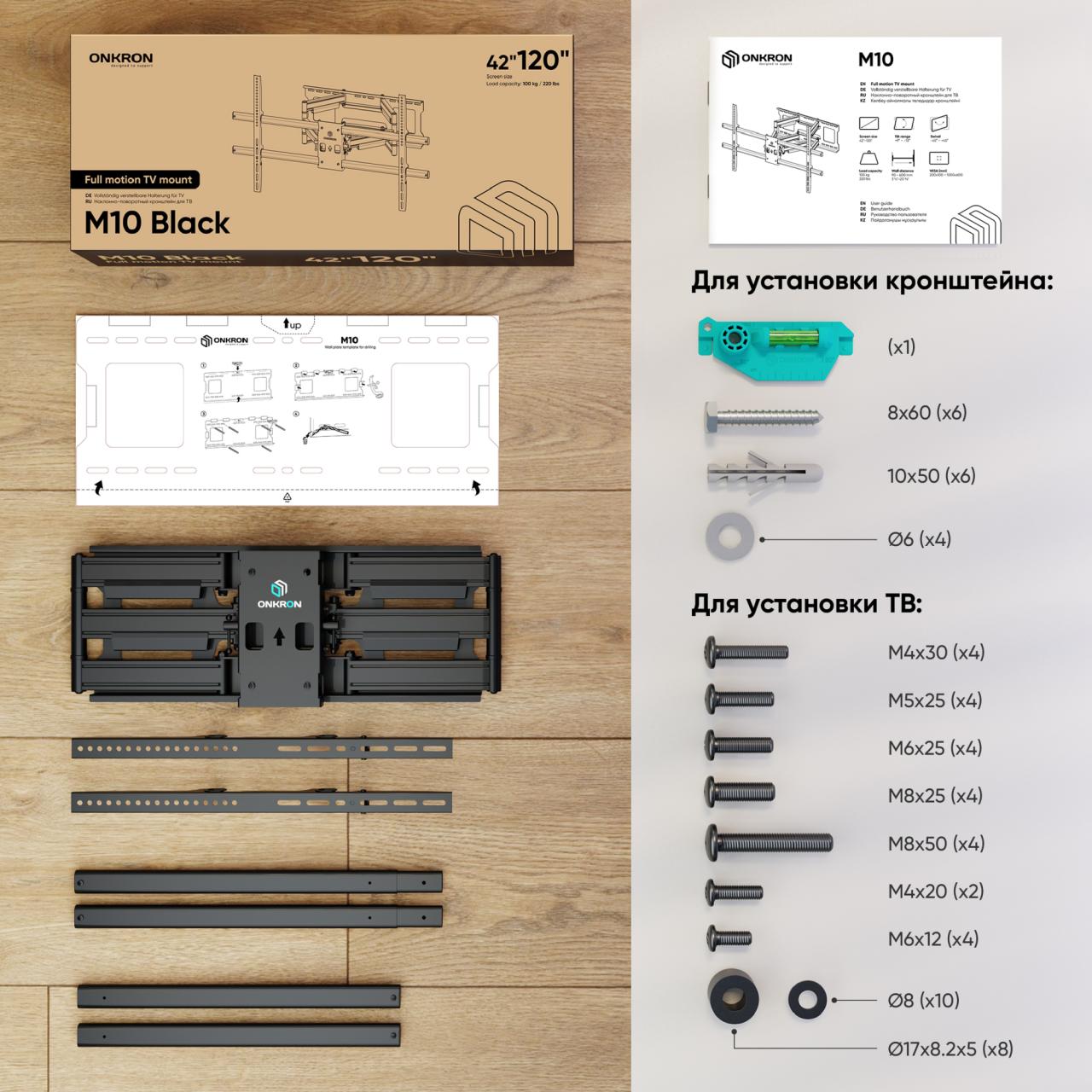 Кронштейн для телевизора Onkron M10, 42"-120" RU, черный