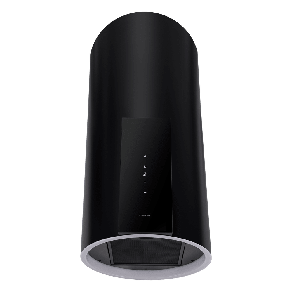 Корпус цилиндрической формы, выполненный из нержавеющей стали с термостойким покрытием, устанавливается на стену над поверхностью плиты. Алюминиевый многослойный жироулавливающий фильтр находится в нижнем торце вытяжки.
