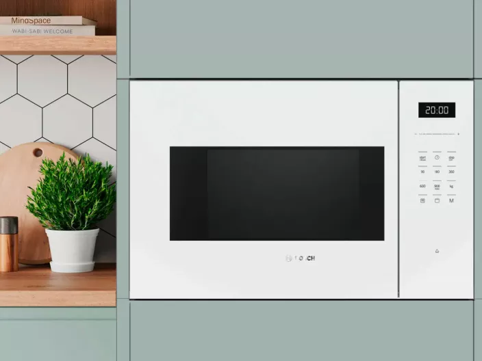 Встраиваемая микроволновая печь Bosch BEL554MW2 — это профессиональный подход к приготовлению пищи, объединяющий высокую мощность микроволн и гриля в стильном белом корпусе. Модель с увеличенным объемом 25 литров предлагает сочетание мощных 900 Вт микроволн и высокомощного 1000 Вт кварцевого гриля, что позволяет не только быстро разогревать, но и запекать блюда до хрустящей корочки. Это идеальный центр для повседневных задач и кулинарных экспериментов на современной кухне.