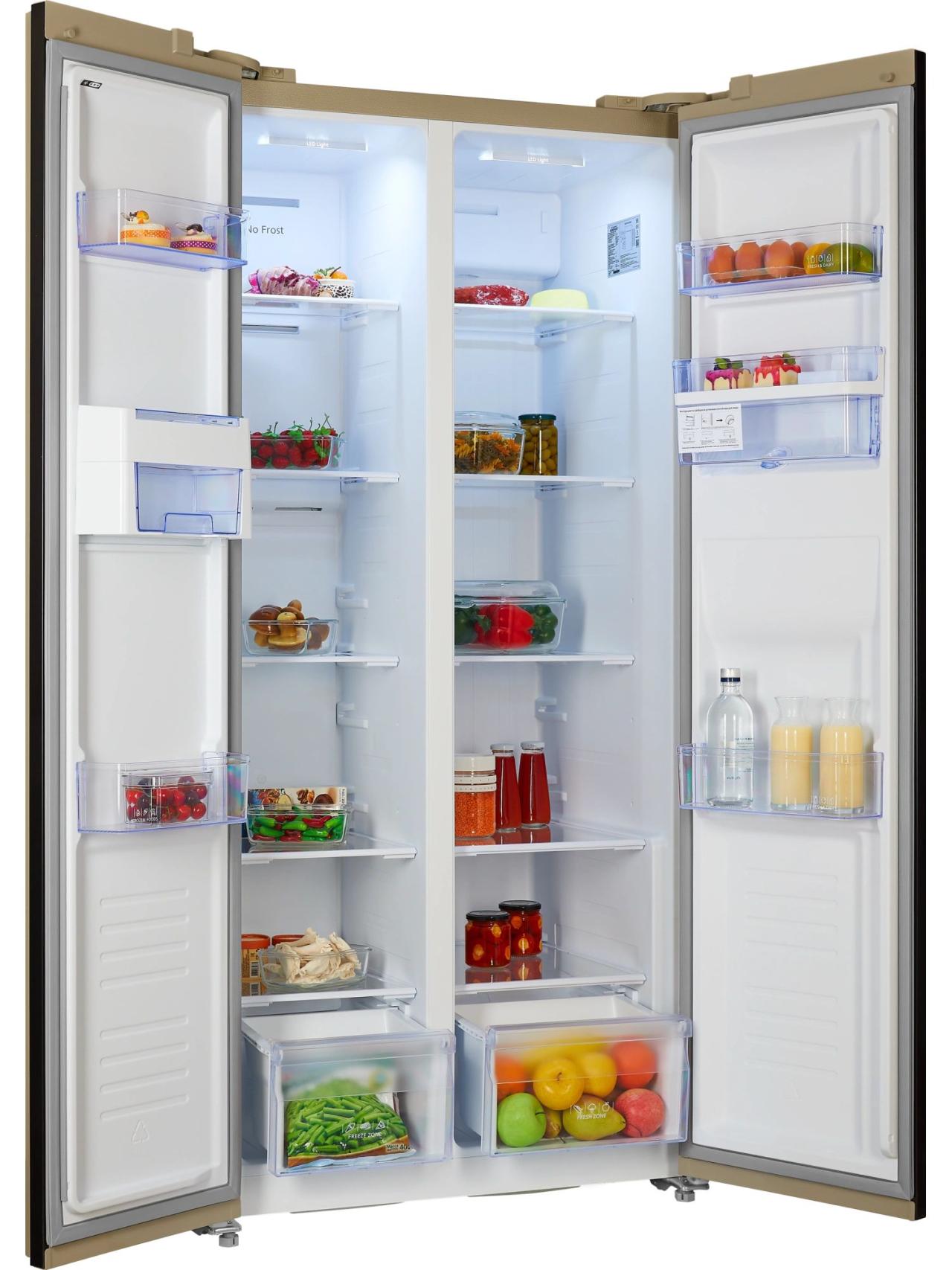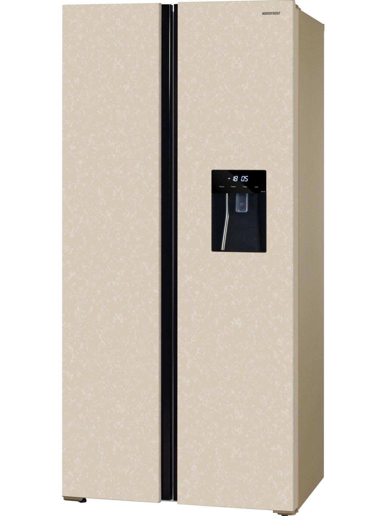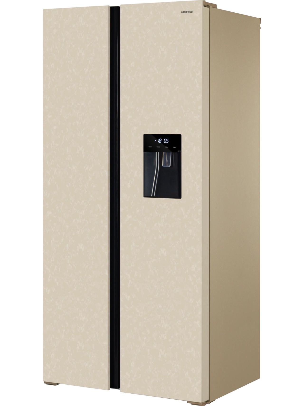 Отдельностоящий инверторный холодильник NORDFROST RFS 484D NFYm типа Side-by-Side с общим объемом 472 литра идеально пойдет для большой семьи и крупногабаритных кухонь.