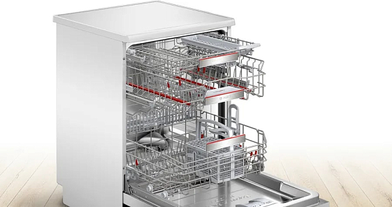 В основе модели — тихий и долговечный инверторный двигатель EcoSilence Drive, который обеспечивает один из самых низких уровней шума в своем классе — всего 40 дБ. Это уровень тихого разговора, что позволяет запускать машину в любое время, не нарушая домашний покой. Умная система Home Connect предоставляет удаленный контроль через смартфон: можно запускать программы, проверять статус или получать уведомления. Сенсор AquaSensor анализирует чистоту воды в реальном времени и оптимизирует расход ресурсов, обеспечивая безупречный результат мытья (класс A) и сушки (класс A) при высокой энергоэффективности (класс A++).