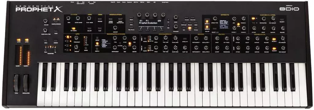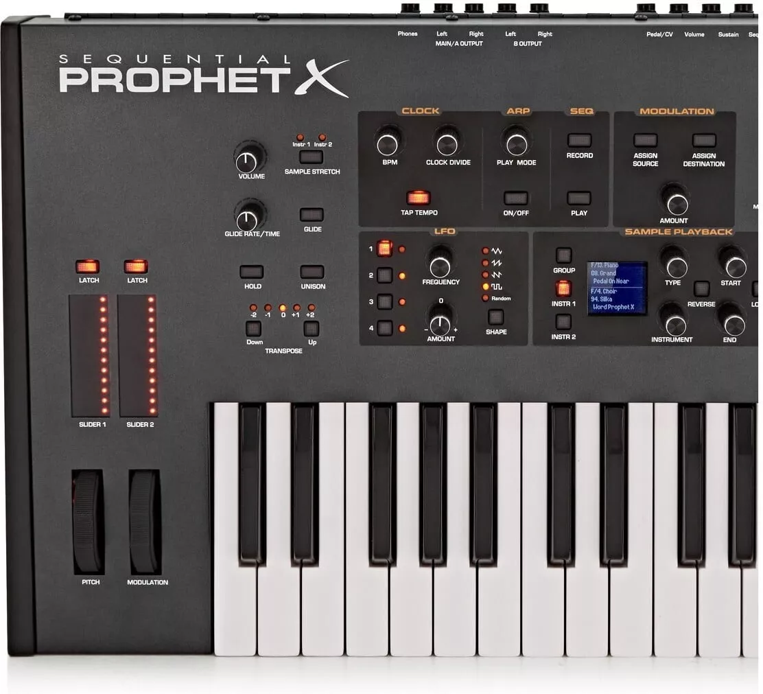 Очень универсальный и индивидуальный 8/16-голосный Prophet X включает в себя новый звуковой движок, который обеспечивает мощь двух инструментов на основе сэмплов 16 бит / 48 кГц и двух цифровых осцилляторов высокого разрешения market - все это обработано аналоговыми фильтрами. Благодаря 150-гигабитному звуковому дизайну 8Dion, состоящему из сэмплов и последовательности из ожидаемых эффективных инструментов синтеза. Этот гибрид sin cash представляет собой высококачественную полувзвешенную клавиатуру 5-oktaavinen (с функцией velocity и channel aftertouch), встроенный блок питания, MIDI USB в режиме ожидания и три ярких OLED-экрана. Это надежный и многогранный выбор как для студии, так и для гастрольного концерта.
