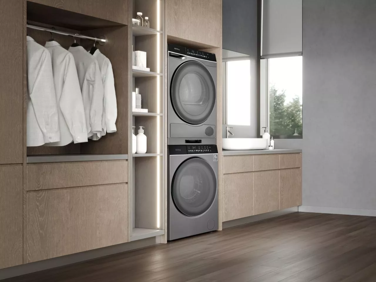 Соединительный комплект с выдвижной полкой для организации колонны из стиральной и сушильной машин.