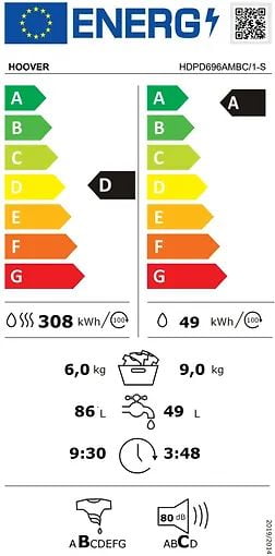 Потребление энергии (стирка + сушка): 308 кВтч/100 стирок.