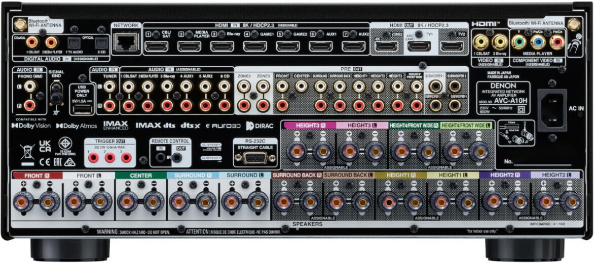 Denon AVC-A10H - усилитель для домашнего кинотеатра с аудиосистемой вашей мечты. Мощный 13,4-канальный усилитель, рассчитанный на 13 динамиков и четыре сабвуфера, обеспечивает мощность до 150 Вт на канал. Наслаждайтесь реалистичными и захватывающими форматами объемного звучания, такими как Dolby Atmos, DTS: X, IMAX Enhanced и AURO-3D; потрясающими 8K-изображениями; и звуком аудиофильского уровня.