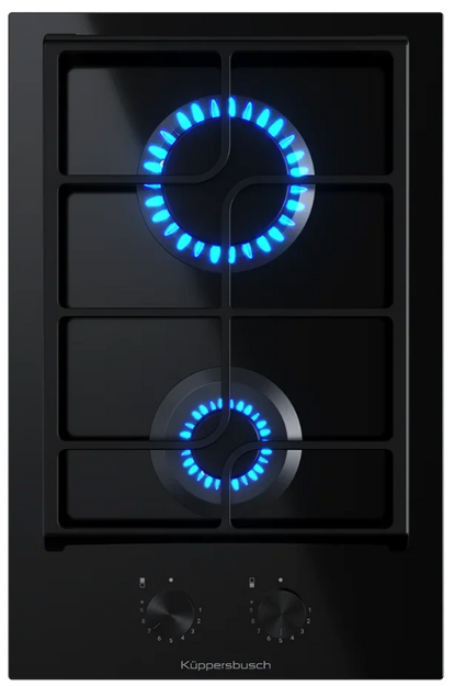 Газовая варочная панель Kuppersbusch VKG 3550.0 SR-E5 — это компактное и функциональное решение для небольших кухонь, студий или вспомогательных зон приготовления пищи. Модель выполнена в строгом черном цвете с прямыми краями, что придает ей лаконичный и аккуратный вид, легко вписывающийся в различные стили интерьера. Благодаря независимой установке и подключению к газовой магистрали панель работает автономно, обеспечивая стабильную и эффективную подачу топлива. Оснащена прочной чугунной решеткой, устойчивой к высоким температурам и надежно удерживающей посуду даже при интенсивной эксплуатации. Управление механическое с поворотными переключателями, расположенными спереди, что обеспечивает удобный и интуитивно понятный доступ к регулировке интенсивности пламени. Автоматический электроподжиг позволяет мгновенно активировать горелки — достаточно повернуть ручку, и пламя загорится без использования спичек или зажигалок. Модель оснащена системой безопасности газ-контроль, которая автоматически перекрывает подачу газа при затухании пламени.