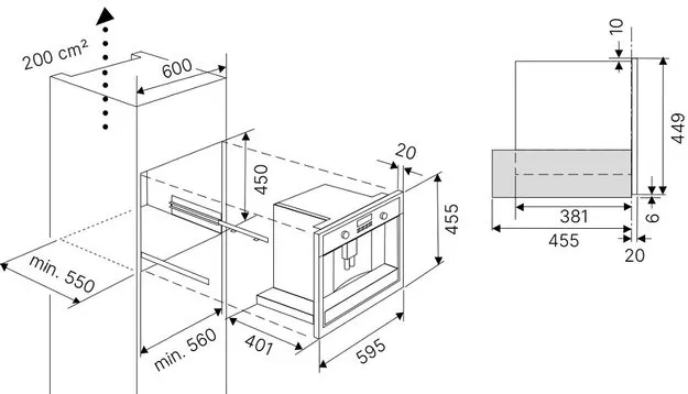 Модель предназначена для встраивания в кухонный гарнитур или колонну. Требуется строгое соблюдение размеров ниши для корректного монтажа и вентиляции. Рекомендуется установка квалифицированным персоналом.